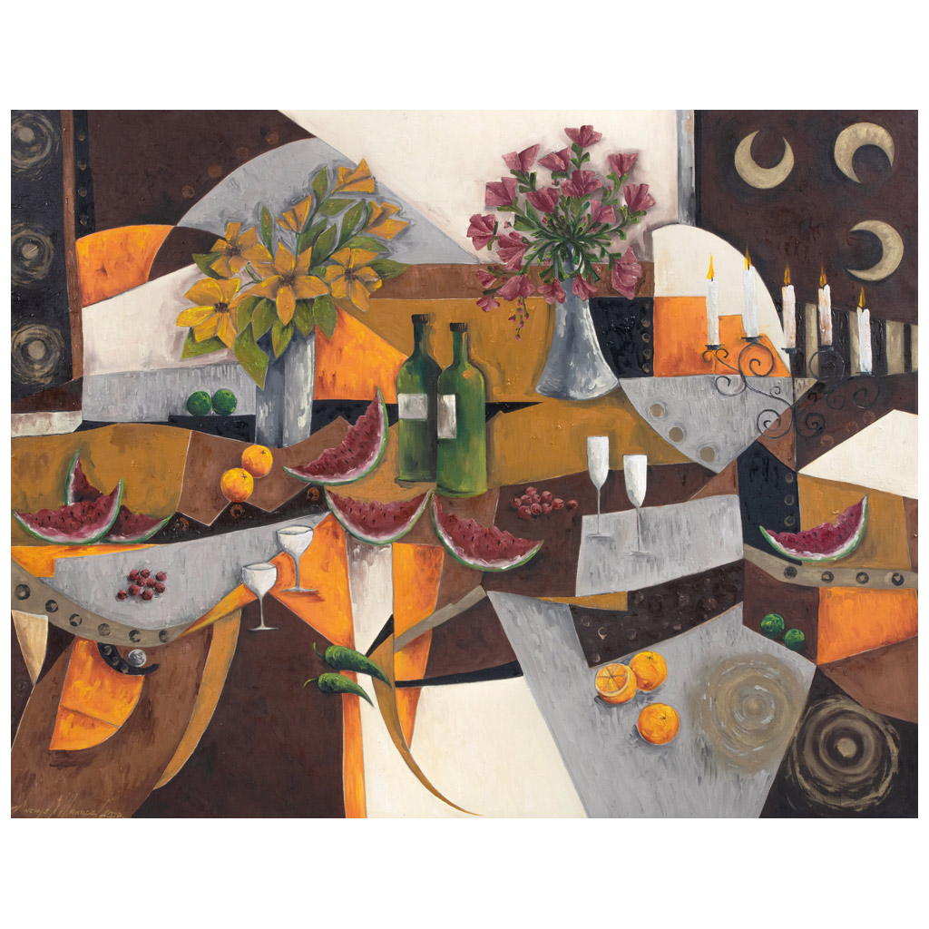 ANDRYS VILLARREAL (Venezuela, 1976 - ) Todos lo bodegones del mundo Firmada y fechada 2023 al frente. Firmada y fechada CDMX - México 2023 Mixta sobre tela Con certificado de autenticidad de la artista. 140 x 180 cm Estimado $150,000-200,000
