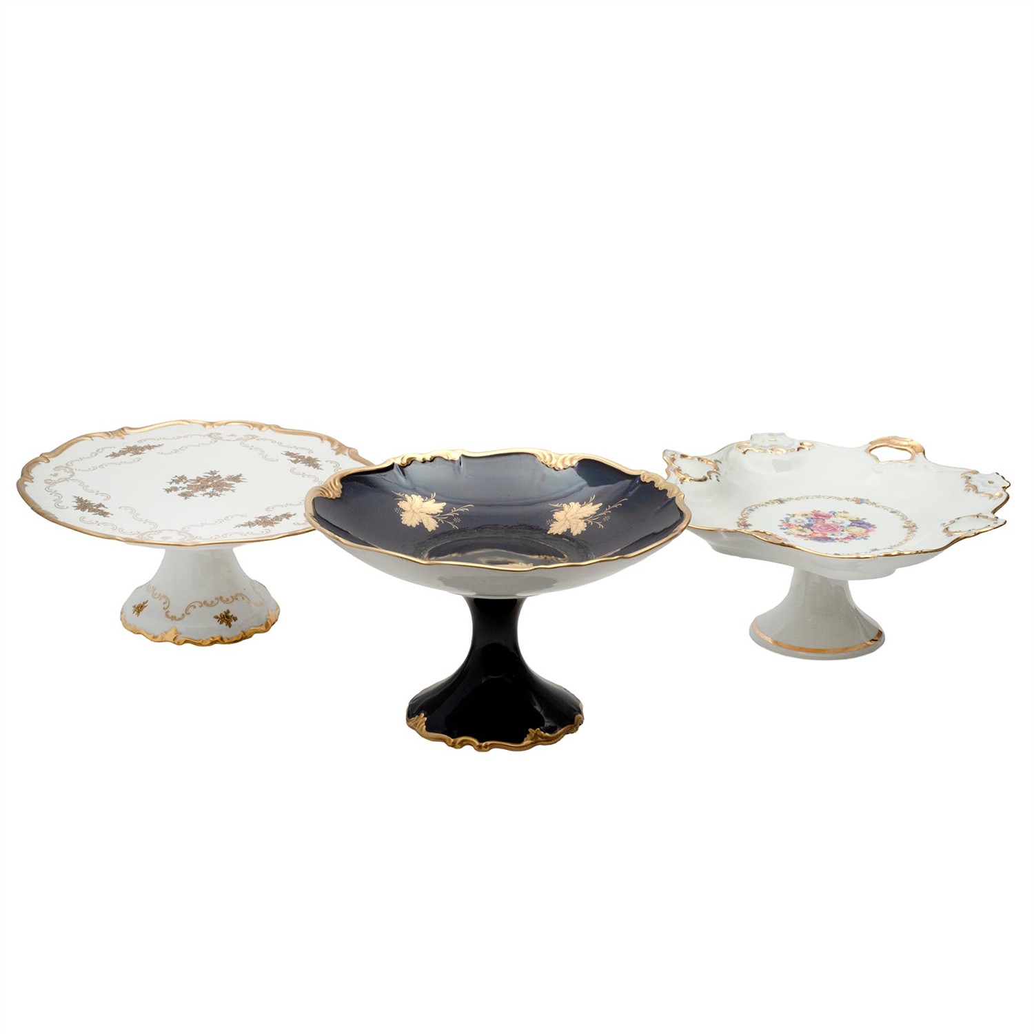 Decoración floral , uno sobre azul cobalto y esmalte dorado