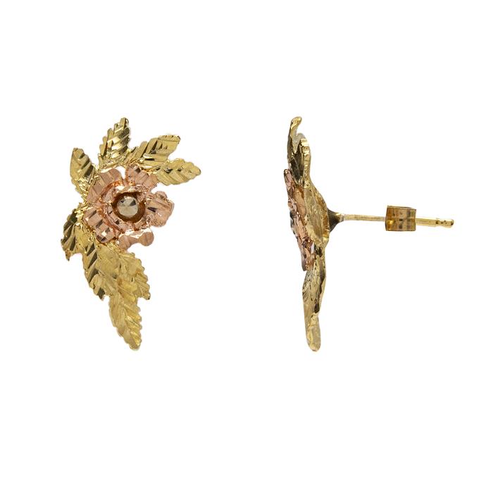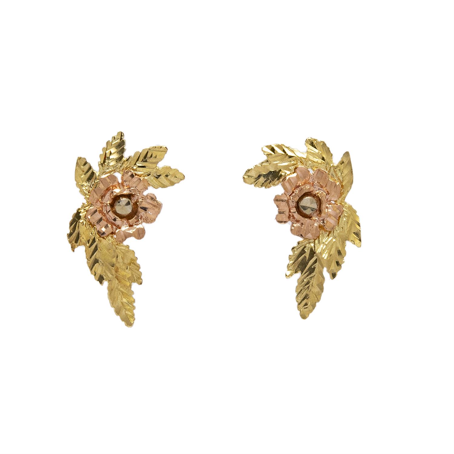 Subasta 1297T, Lote # 249 PAR DE ARETES "ROSALES" EN ORO AMARILLO DE 14K Poste y contra (vistas rojas). Tamaño: 2.0 cm x 1.2 cm aprox. Peso: 2.0 g. Estimado $2,000-2,500
