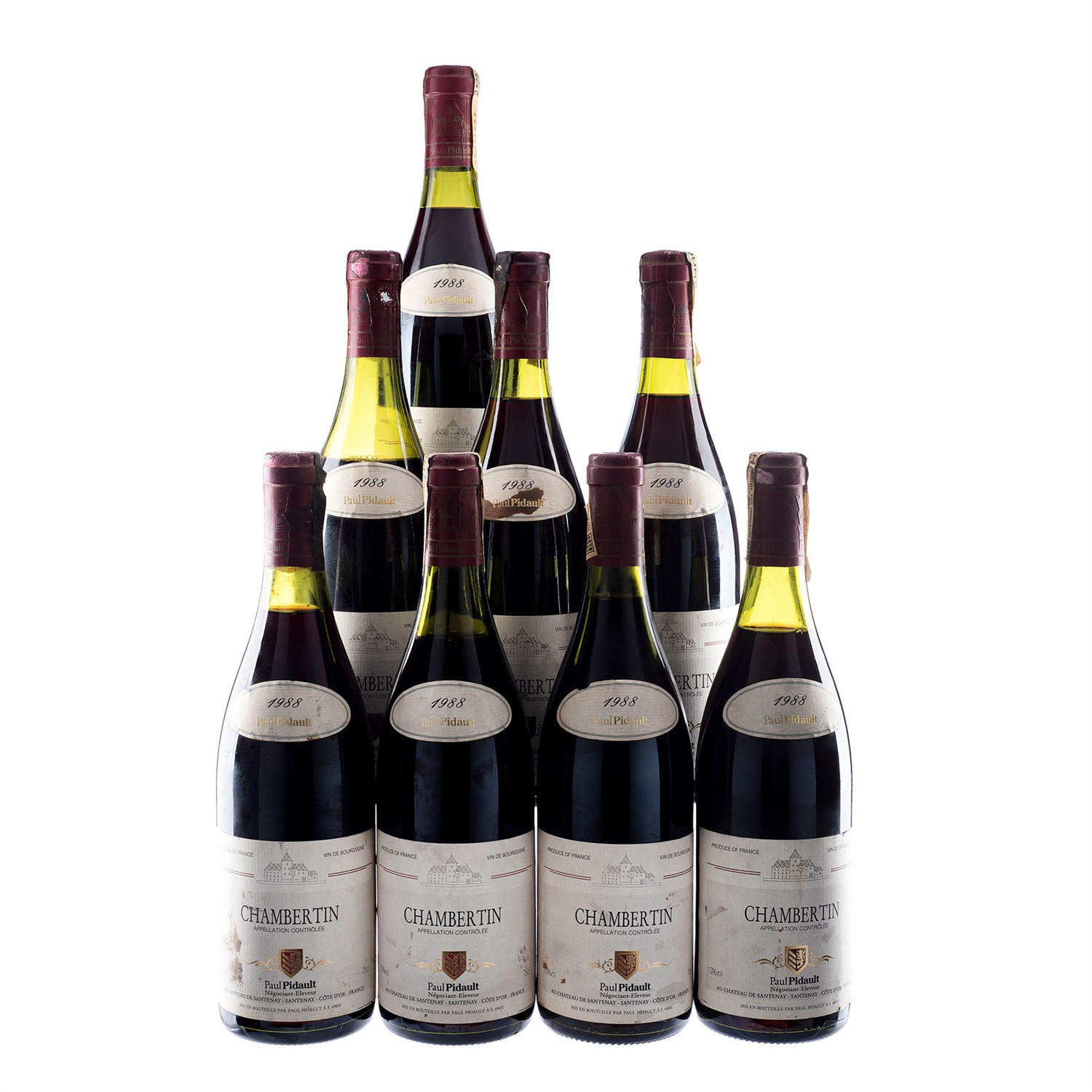 Subasta 1296T, Lote # 49 Paul Pidault ChambertinGrand Cru Cosecha: 1988 Gevrey-Chambertin, Borgoña, Francia Nivel: en el cuello Piezas: 8 88 / 100 Estimado $3,800-4,000