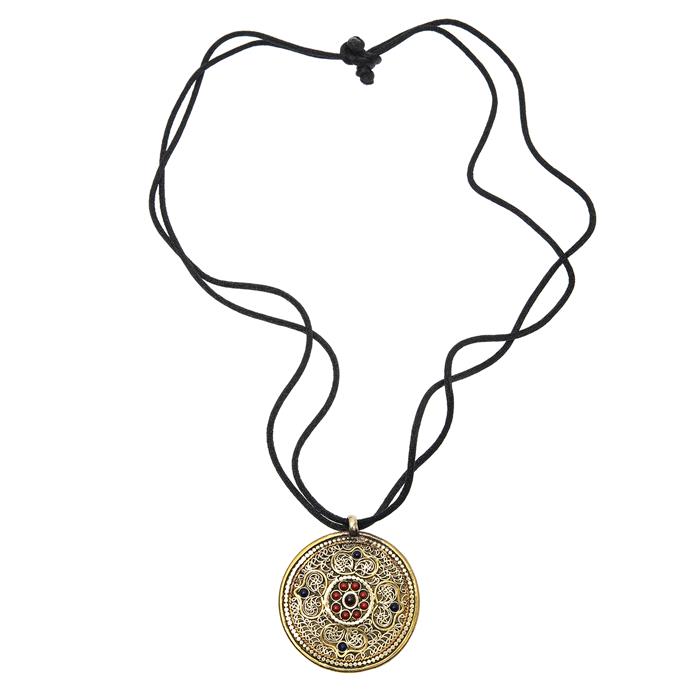 COLLAR Y MEDALLON CON CORALES Y LAPISLAZULIS EN METAL DORADO