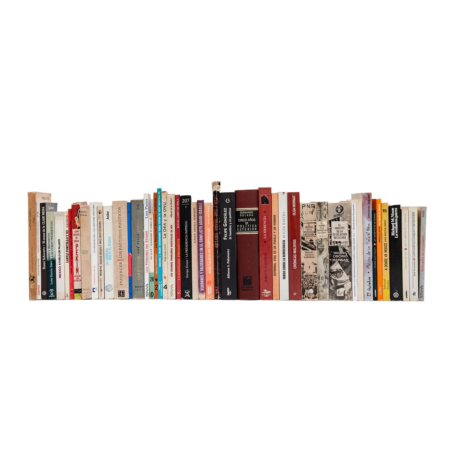 Algunos títulos: Miguel Osorio Marban. El partido de la Revolución Mexicana. México, 1970. Tomos I - II. Dedicado por el autor; Everardo Espino. El Quiebre… México, 2008. Dedicado por el autor; Carlos Loret de Mola Mediz. 29 Artículos Periodísticos. México, 1976. Dedicado por el autor; J. Grey. Por qué Luis Echeverría Debe ser Presidente. México, sin año. Dedicado por el autor; Carlos Cuevas. Sonríe Señor Presidente. México, 1975. Dedicado por el autor;José M. Niño. En torno al Presidente de la República. México, 1974. Dedicado por el autor; Israel visto por Mexicanos; Verdades y Falsedades en el Conflicto Árabe-Israelí; Cinco Años de Política Exterior; Entre otros. Encuadernados en rústica y pasta dura. Total de piezas: 46.