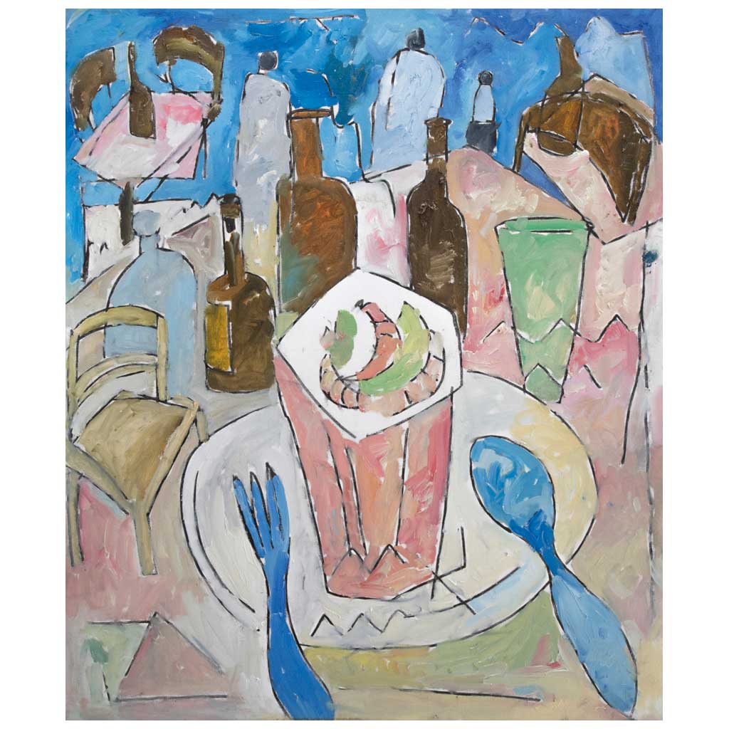 Subasta 1296T, Lote # 104 PHIL KELLY (Dublín, Irlanda, 1950 - Ciudad de México, 2010) Cóctel de camarones Firmado y fechado Mex. D.F 1999 al reverso Óleo y carboncillo sobre tela Con certificado de autenticidad de Ruth Munguía, agosto de 2021. Agradecemos a la familia Kelly Munguía por la verificación de autenticidad de esta obra, febrero de 2024. Phil Kelly, un pintor mexicano de origen irlandés como suele referirse, tuvo una formación autodidacta alejado de las instituciones tradicionales con las que no llevaba una buena relación. Se dice que llegó a nuestro país a raíz de una decisión al azar, al elegir por medio de un volado entre París y la Ciudad de México, siendo la última la ganadora y de la cual quedaría enamorado con el paso de los años. Artísticamente sus trazos gruesos y de colores explosivos describen su visión tanto alegre como apocalíptica de las calles, puentes, hoteles y bares de México. Su pintura es testimonio de su gusto por las composiciones cromáticas y fascinación por las estructuras modernas de las metrópolis. Fuentes consultadas: SPRINGER, José Manuel et al. Phil Kelly. Dos horas y veinticinco años. México. Aeroméxico, American Express, 2005, pp. 15-21 y EMERICH, Luis Carlos et al. Phil Kelly. Las manos, el corazón, los ojos, la vida. México. ESPAC Espacio de Arte Contemporáneo, Editorial Fogra, 2014, pág. 164. Los estimados de este lote son de recuperación y no corresponden al valor real de la obra. 120 x 100 cm Estimado $72,000-150,000