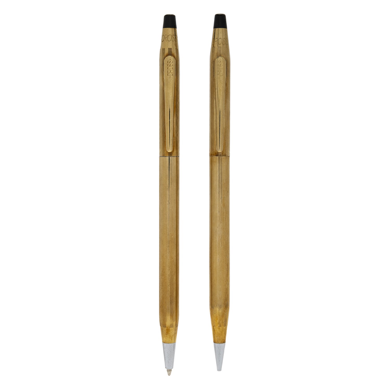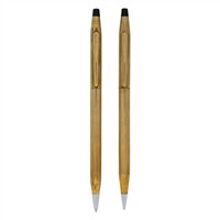 BOLIGRAFO Y PORTAMINAS CROSS EN CHAPA DE ORO AMARILLO DE 10K Y ACERO INOXIDABLE Cuerpo y capuchón de Cross en chapa de oro de 14k y vistas blancas (acero inoxidable). Serie: NV Accesorios: estuche y manual. Estimado $1,000-2,000