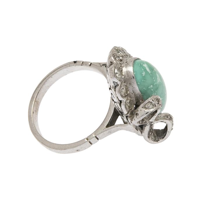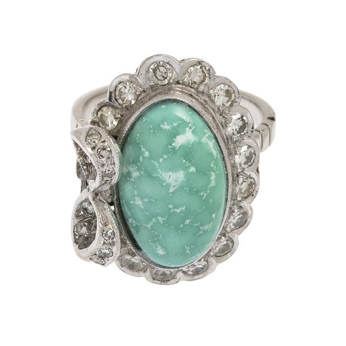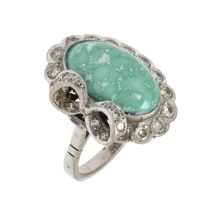 ANILLO CON DIAMANTES Y TURQUESA EN PLATA PALADIO