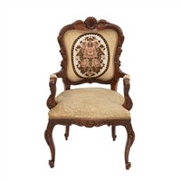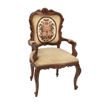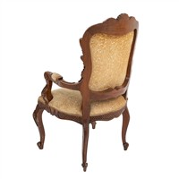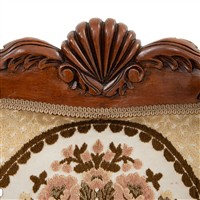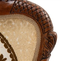 Decorado con medallón con bouquet en respaldo, venera, ornamentos vegetales y arquitectónicos tallados