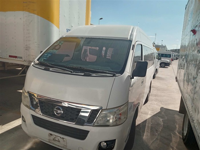 Eco. U51865; Camineta de pasajeros, Urvan; Marca: Nissan; Modelo: 2016; Serie: JN1BE6DS6G9009089; Ubicación: Leon; Observaciones: Unidad sin prueba de arranque, por lo que no se garantiza su funcionamiento, 1 llave, sin batería, transmisión sin probar, interiores regulares, vestiduras rotas, chasis con corrosión, carrocería con golpes ligeros, faros opacos, llantas 1/4 de vida;