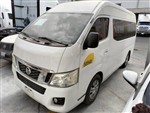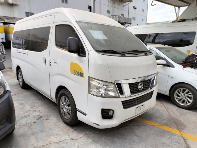Eco. U50940; Camioneta Pasajeros, Urvan; Marca: Nissan; Modelo: 2015; Serie: JN1BE6DSXF9003374; Ubicación: Mexicali; Observaciones: Unidad sin prueba de arranque, por lo que no se garantiza su funcionamiento, motor a gasolina, con fuga de aceite, bateria dañada, falta llave; transmision estandar sin probar; diferencial sin probar; interiores regulares, vestidura y tapete con desgaste; instrumentos regulares, tablero regular completo; suspension de muelles sin probar; chasis con corrosion; carroceria con golpes ligeros, cuarto direccional trasero lado derecho, lateral de carroceria lado derecho, fascias delantera y trasera dañados, faros opacos; 4 llantas con 1/4 de vida. ;