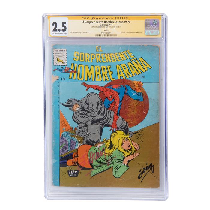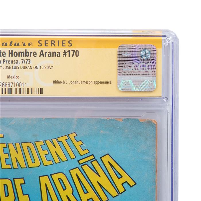 El Sorpendente Hombre Araña. No. 170. México: La Prensa. Cómic certificado CGC: 2688710011. 2.5 calificación. Firmado por José Luis Durán.Estimado $8,500-15,000